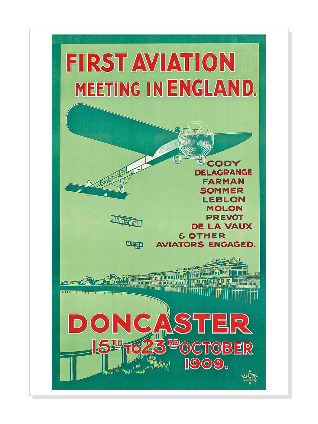 First Aviation Meeting In England Doncaster 1909 Print First Aviation Meeting In England Doncaster 1909 Our vintage poster reproductions are printed on specially sourced, thick stock 230gsm matt paper