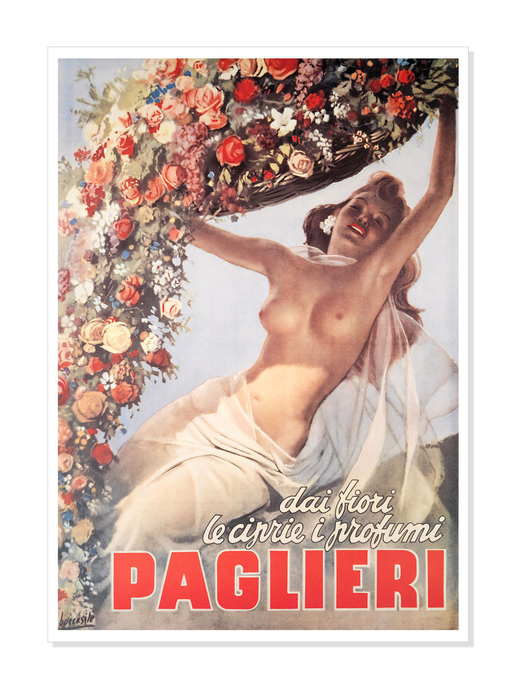 Paglieri Perfume Advertising Poster By Gino Boccasil 1949 Original Design Idea Uncensored Print Paglieri Perfume Advertising Poster By Gino Boccasil 1949 Original Design Idea Uncensored Our vintage poster reproductions are printed on specially sourced, thick stock 230gsm matt paper