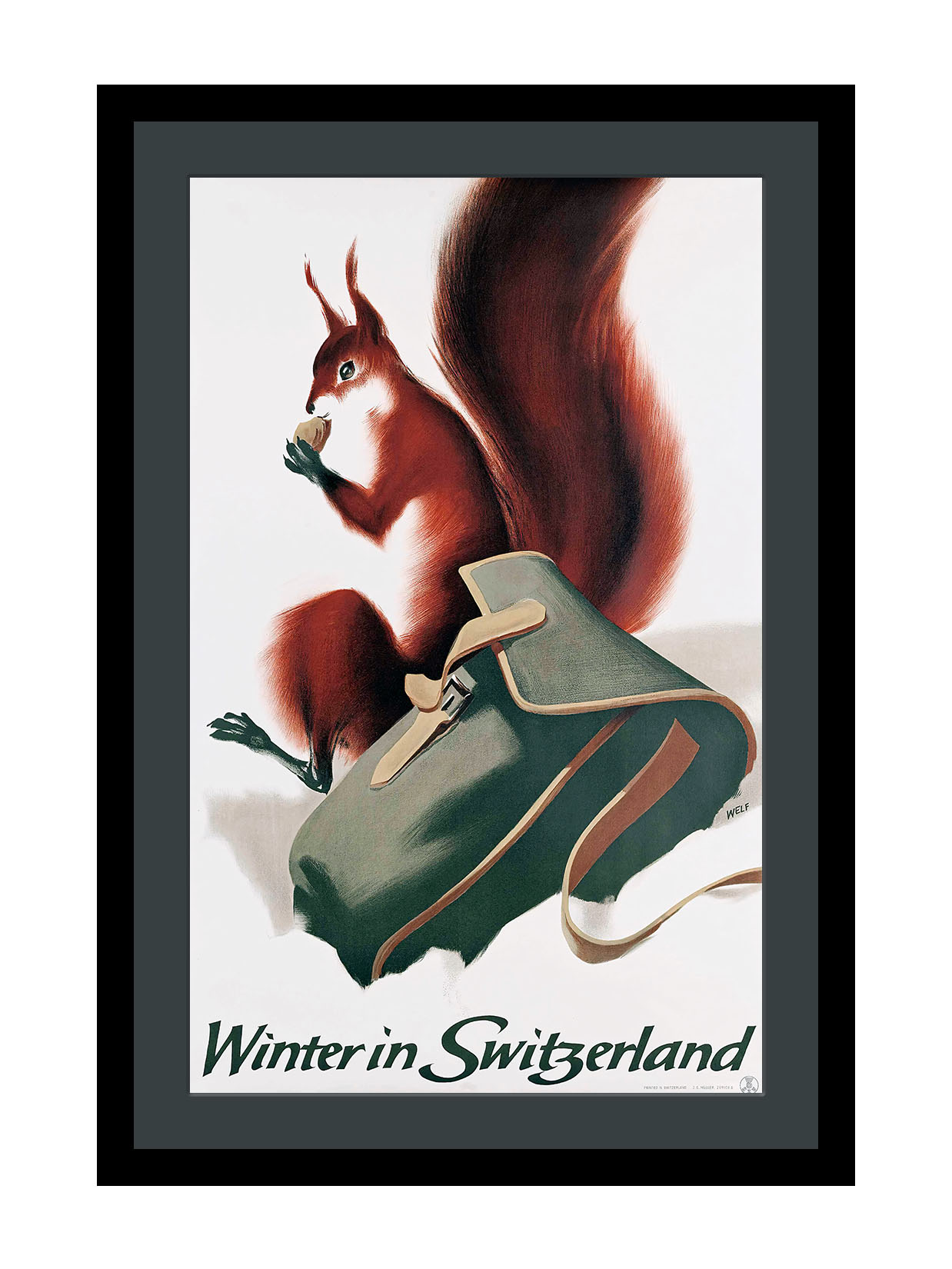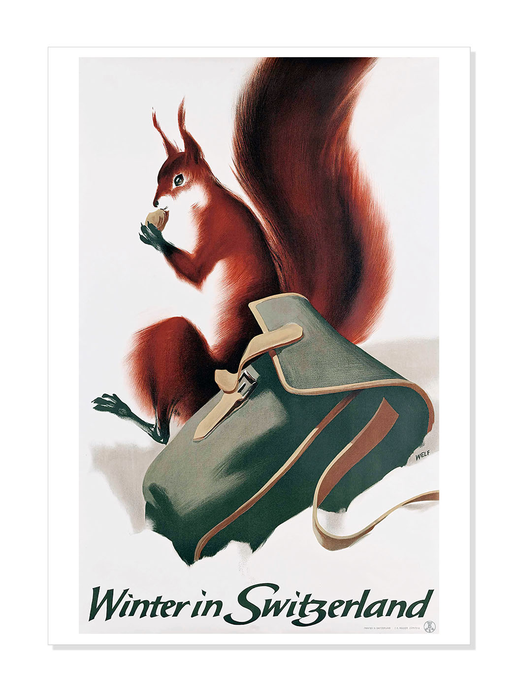 Winter In Switzerland Squirrel Advertising Poster By Edmund Welf 1945 Print Winter In Switzerland Squirrel Advertising Poster By Edmund Welf 1945 Our vintage poster reproductions are printed on specially sourced, thick stock 230gsm matt paper