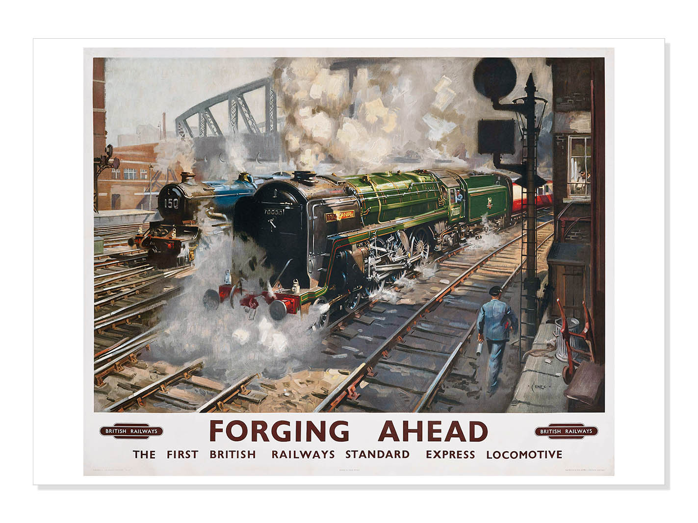 Forging Ahead British Railways Steam Train Poster By Terence Cuneo 1950 Print Forging Ahead British Railways Steam Train Poster By Terence Cuneo 1950 Our vintage poster reproductions are printed on specially sourced, thick stock 230gsm matt paper