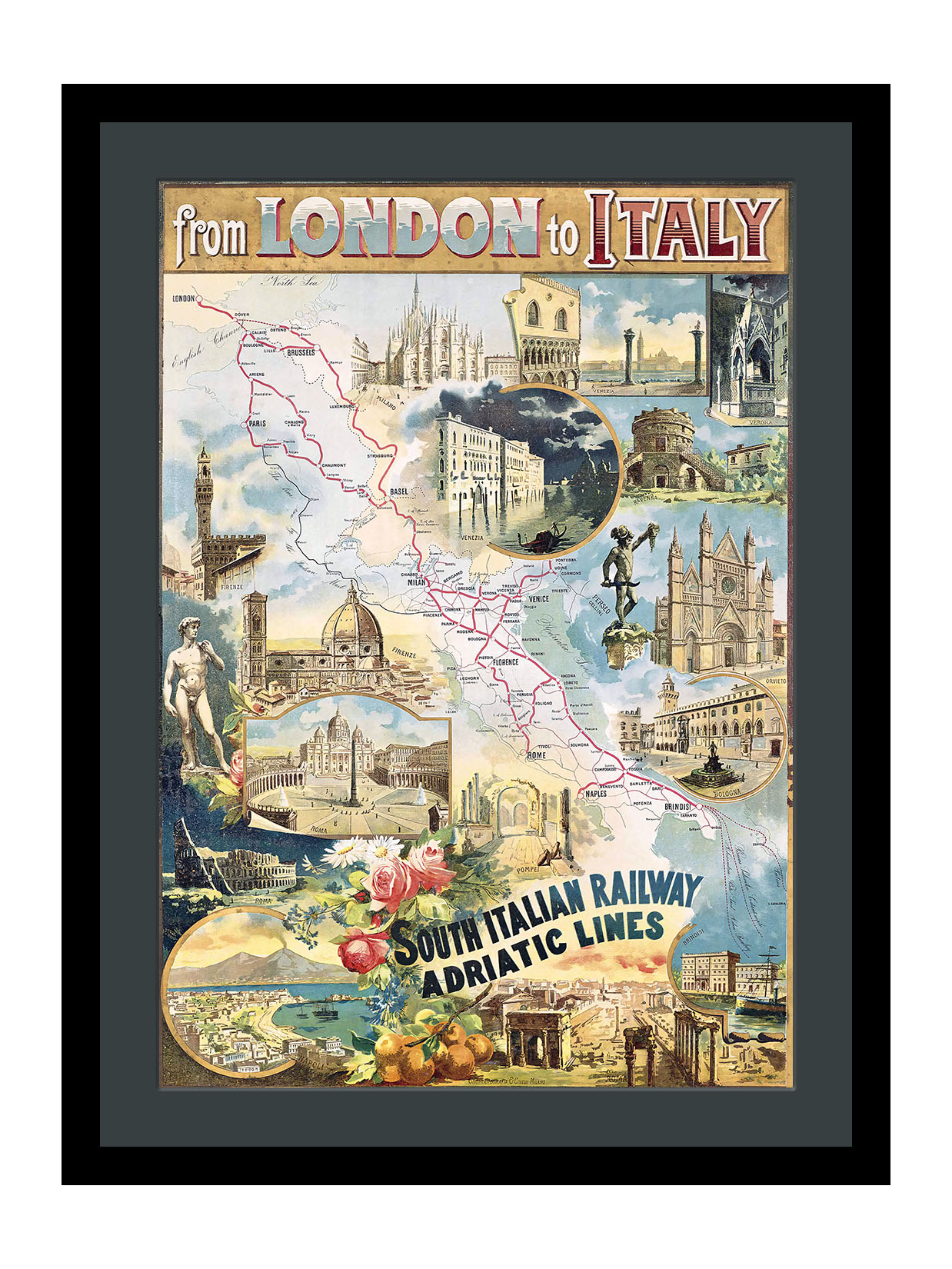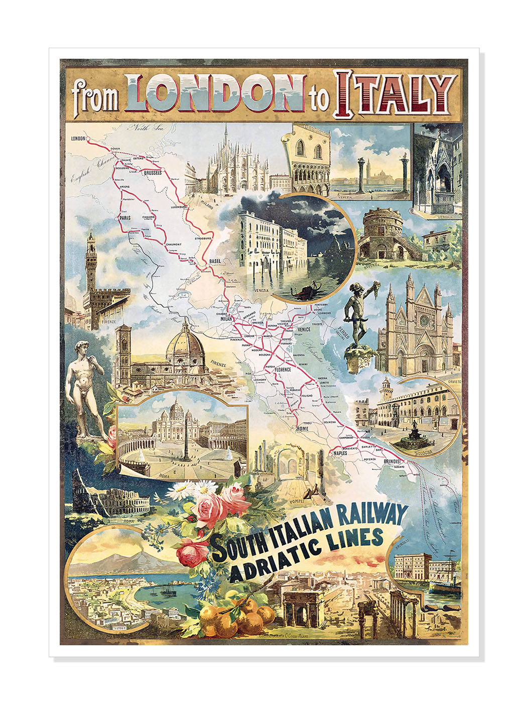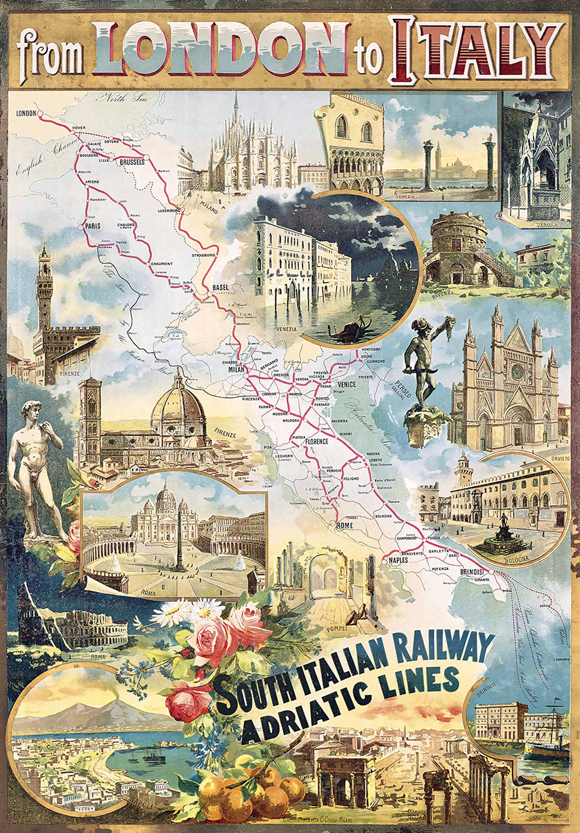 From London To Italy By Railway Poster 1906 Print From London To Italy By Railway Poster 1906 Our vintage poster reproductions are printed on specially sourced, thick stock 230gsm matt paper